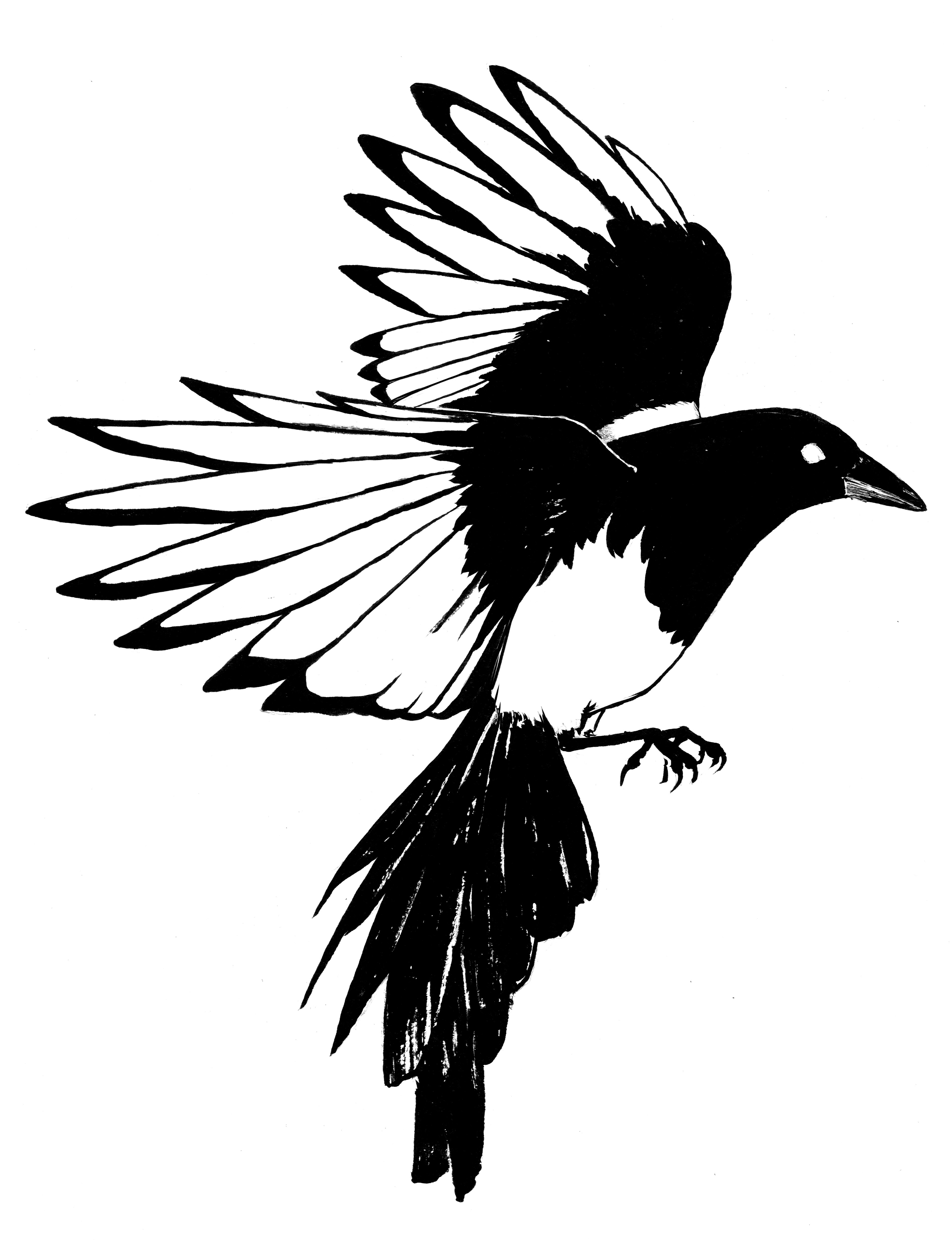 From there I drew a magpie in ink, which later translated to a paper cutout. For the central figure of the protagonist, I zoomed out and went with a solid silhouette to give a layered effect to the cover art.